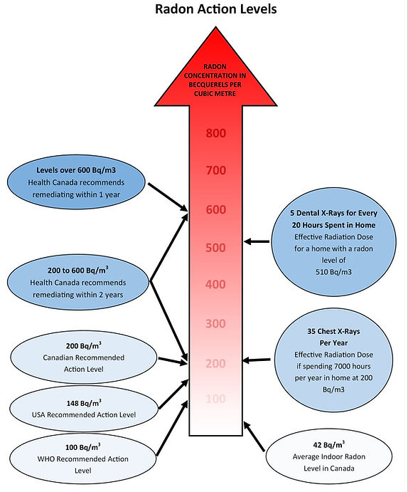Often, simple measures such as sealing cracks, covering open sump pits, or using your air exchanger can bring down the level of Radon to an ‘acceptable’ level.